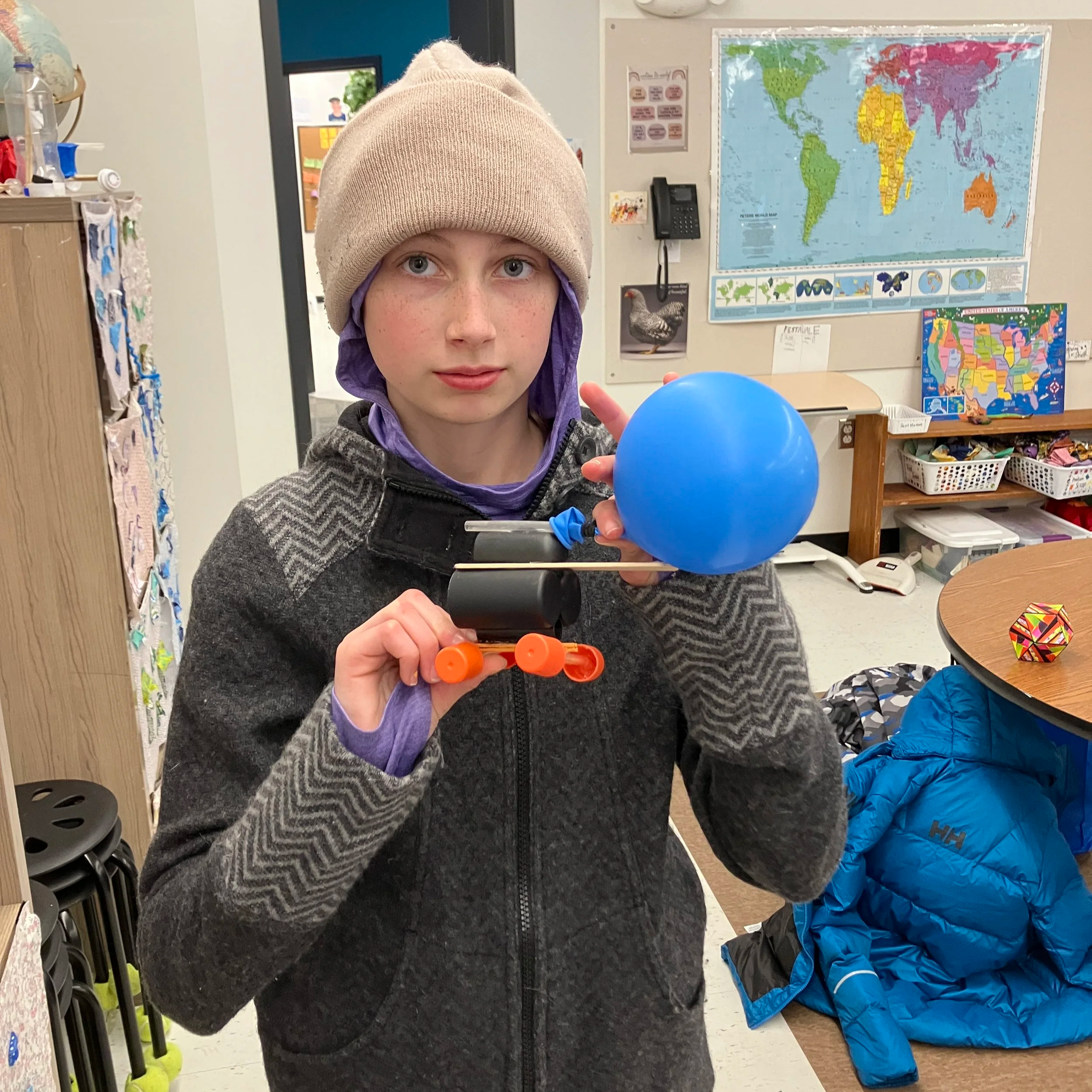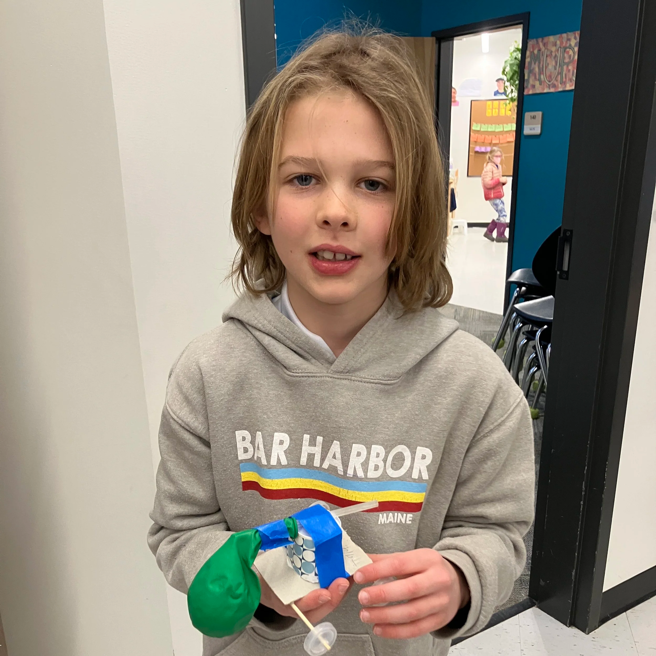 Four students in Middles Quartz shared about their process and how their balloon cars worked (or didn’t!).