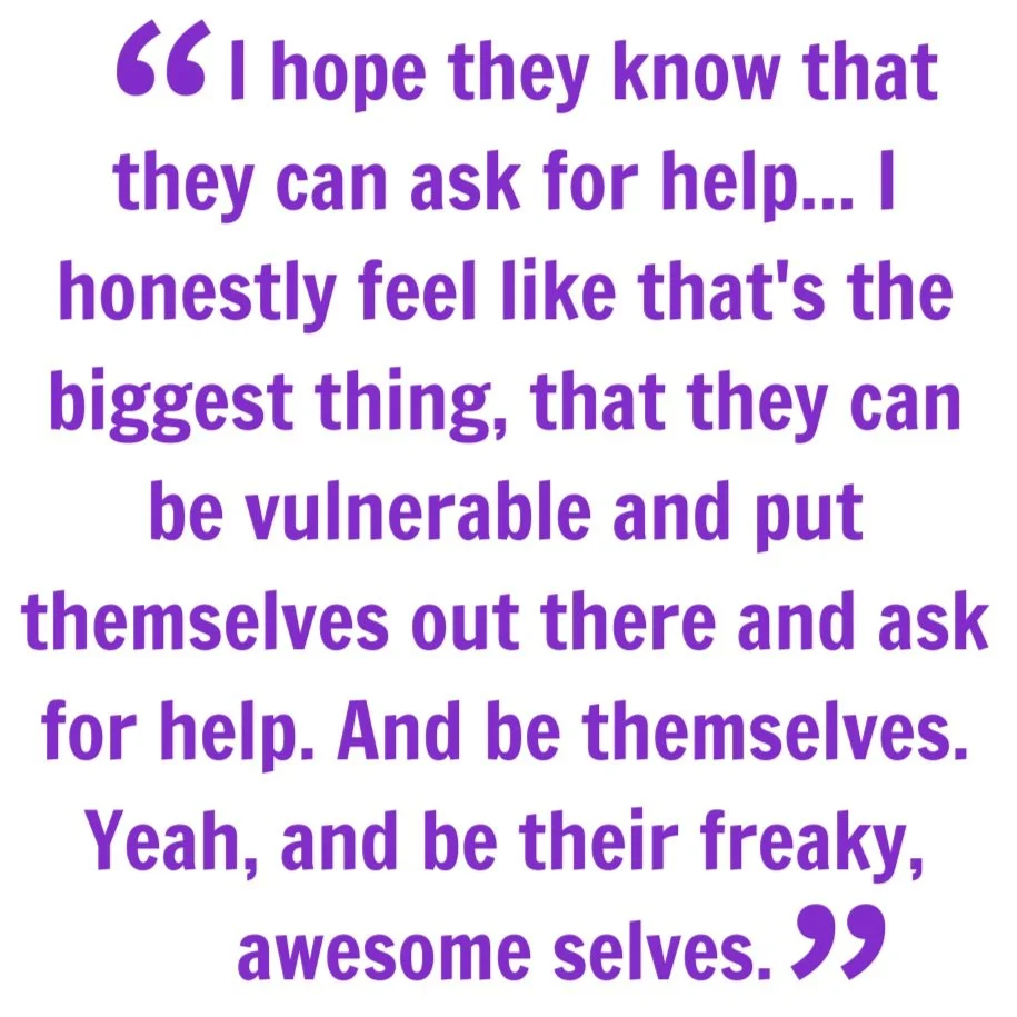 JD: I hope they know that they can ask for help. Doing whatever they're doing in their life. I hope they know that. I honestly feel like that's the biggest thing, that they can be vulnerable and put themselves out there and ask for help. And be themselves. Yeah, and be their freaky, awesome selves.
